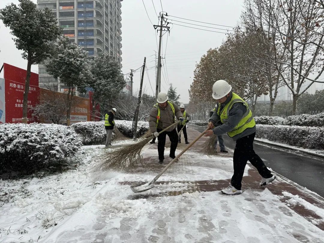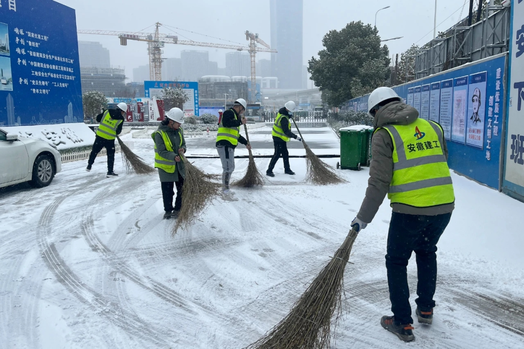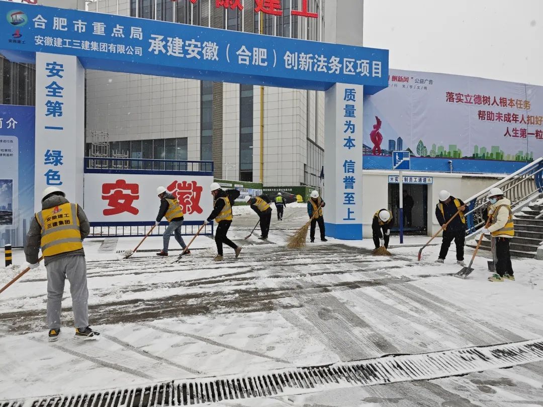 安徽(合肥)创新法务区项目组织全体管理人员清扫项目出入口及项目内部道路上的积雪,为项目施工安全提供坚强保障。