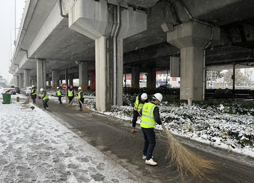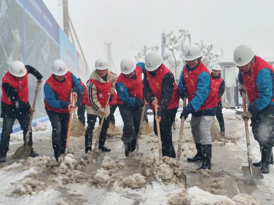国家级芜湖经济技术开发区汽车电子产业园基础设施建设项目,项目职工组成党员先锋队和青年突击队,对项目周边市政道路、公交站台及项目办公区域开展扫雪除冰活动,减少雨雪天气带来的安全隐患,保障周边居民及项目人员安全出行。