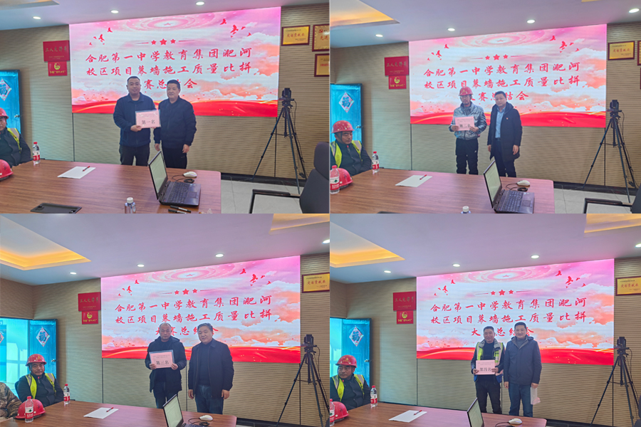 2023年12月31日上午,装饰公司合肥一中淝河校区项目开展的为期一个月的幕墙施工质量技能比拼大赛圆满落幕。活动邀请了项目甲方、监理和分公司班子成员以及公司质量科作为评委参加活动。