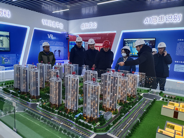 调研组一行深入项目现场,实地查看了项目智慧工地展厅、农民工实名制管理等区域,重点了解了楼层施工情况。在听取项目建设情况汇报后,霍锦绣强调,岁末年初,项目要聚焦重点环节和关键部位,加强隐患排查,安全高效推进项目建设进度,同时项目要依法维护广大工友的劳动报酬权益,扛牢政治责任,强化使命担当,以实际行动维护好广大工友的合法权益。