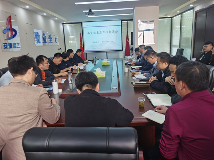 1月13日,华南公司召开春节前重点工作部署会,总结分公司2023年的整体工作,分析研判存在的问题,研究部署春节前重点工作。会议由分公司经理方中主持,分公司领导班子、科室负责人、项目经理及核算员共23人参加会议。