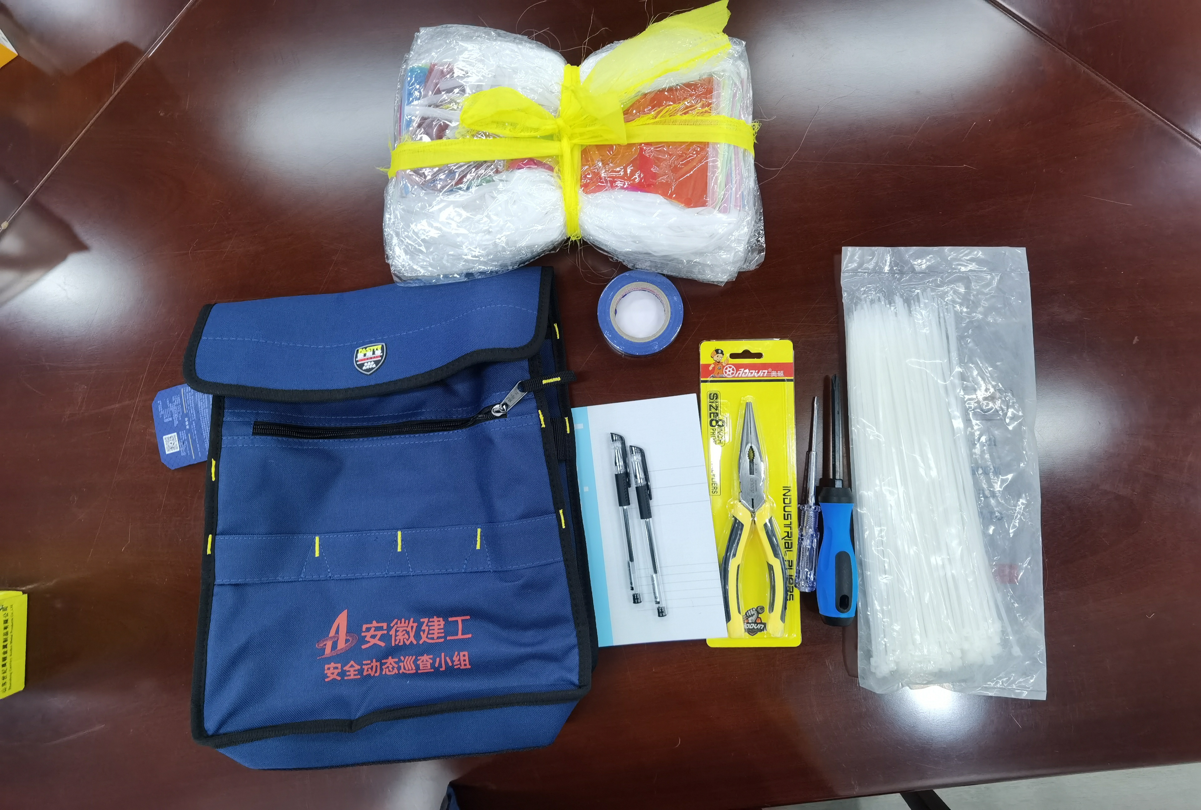项目成立安全动态巡查小组,从施工安全、设备运行到人员安全,做到全面巡查监控。小组成员全员配备安全工具包,其中包含老虎钳、螺丝刀、黄色反光马甲等安全用品,每天定时巡查,及时发现并解决潜在的安全隐患,确保施工环境安全稳定,在建设一线筑起一道“黄色安全防线”。