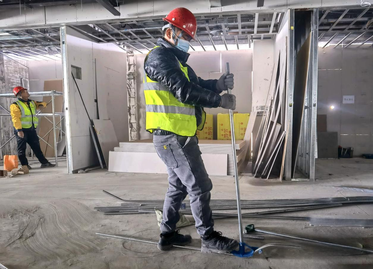 近日,在位于高铁南站旁的安徽建工三建集团安徽(合肥)创新法务区项目施工现场,登高车来回穿梭,近800名工人正分布在不同楼层进行墙体砌筑、吊顶、焊接、安装等工序,一派热火朝天的大干景象,项目预计今年4月底首期完工,5月挂牌。