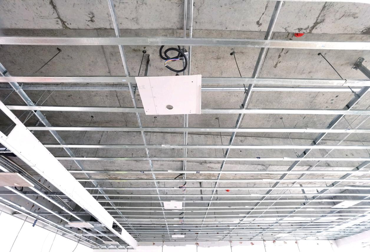 ②4至9层轻钢龙骨隔墙已完成,吊顶丝杆龙骨完成95%,顶面封板完成90%,地砖铺贴已完成,卫生间防水已完成,墙面装饰基层已完成,自流平完成30%;