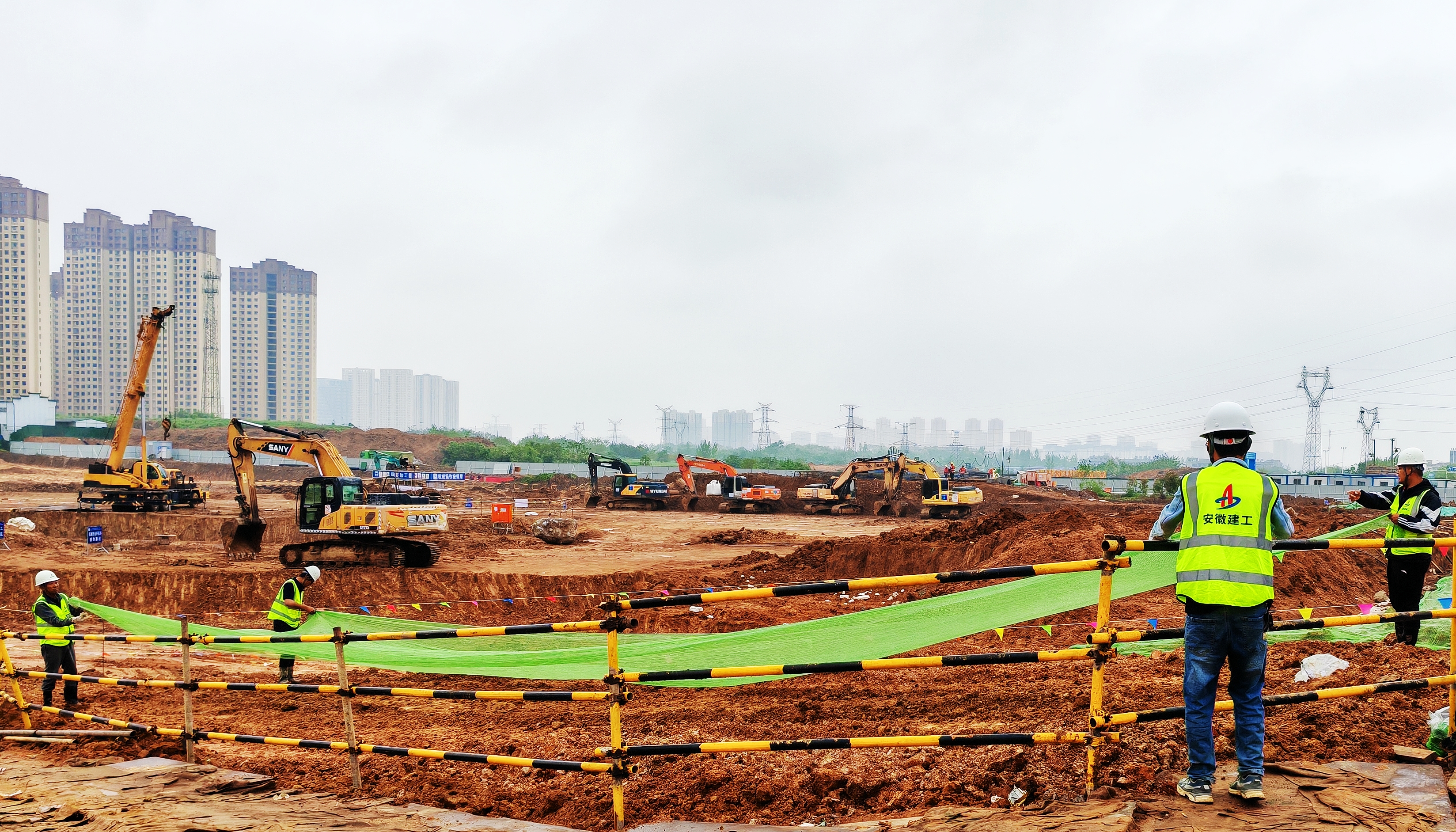 六分公司庐江县庐城镇申山绿苑二期安置房项目1标段项目部组织全体管理人员参加扬尘治理工作,对场区内裸露地面进行扬尘覆盖,在整个施工过程中确保6个100%环保要求。