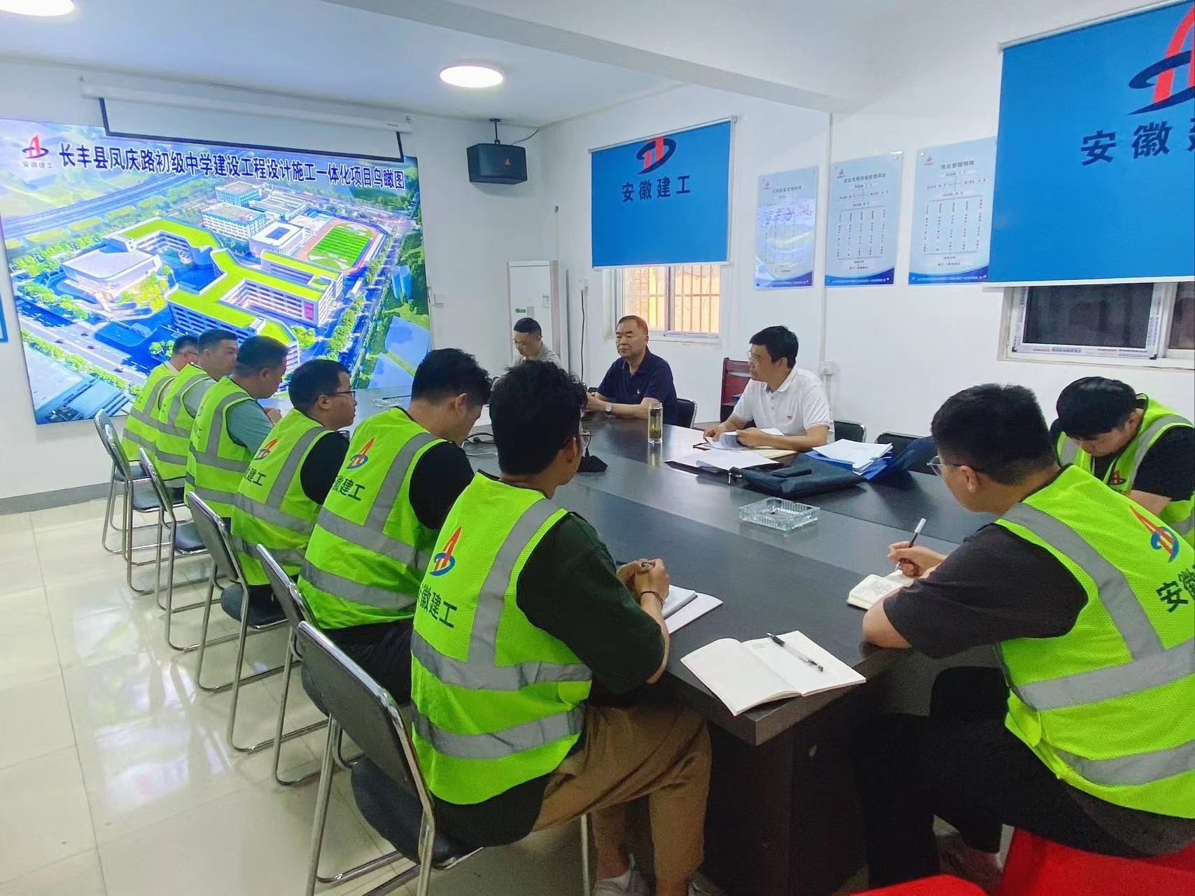 李跃进实地察看项目建设情况,详细询问了目前工程进展、质量管控、安全文明、党纪学习教育等工作内容,并对目前项目建设工作给予充分肯定。他指出,党纪学习教育要辐射到整个项目班子成员,做到全面学习,强化所有管理人员纪律意识,提升廉洁自律能力,自觉规范自身行为;凤庆路中学项目作为长丰县2024年度重点民生工程项目,要严抓安全工作、保证质量,强化项目管理,凝聚团队力量,迎难而上,真抓实干,确保建设高品质工程;同时要关心员工日常生活情况,及时解决发生的困难,提升员工工作幸福感。