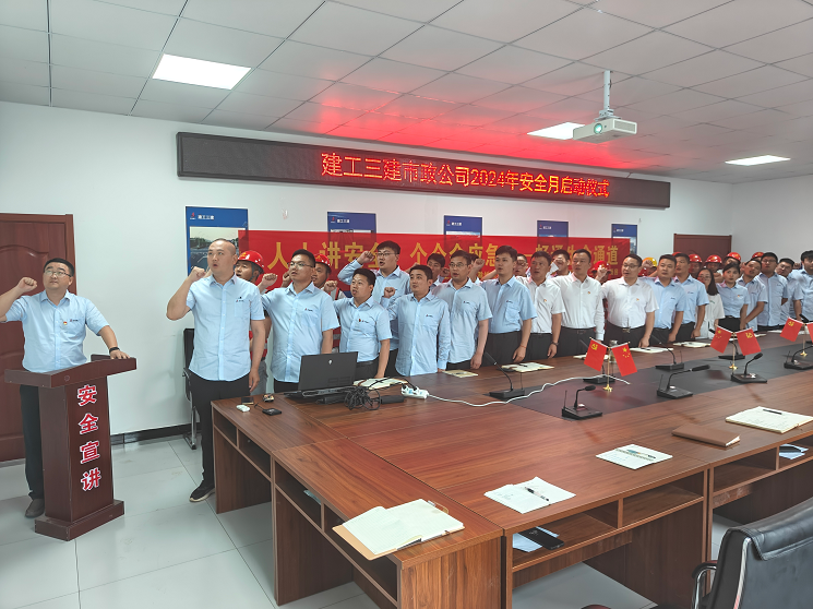 为强化安全生产责任,提高安全生产意识,5月30日,安徽建工三建市政公司“安全生产月”活动领导小组组织,在滁州高新区城东片区产业升级示范园一期、二期建设项目开展安全生产月启动仪式、安全宣誓活动。