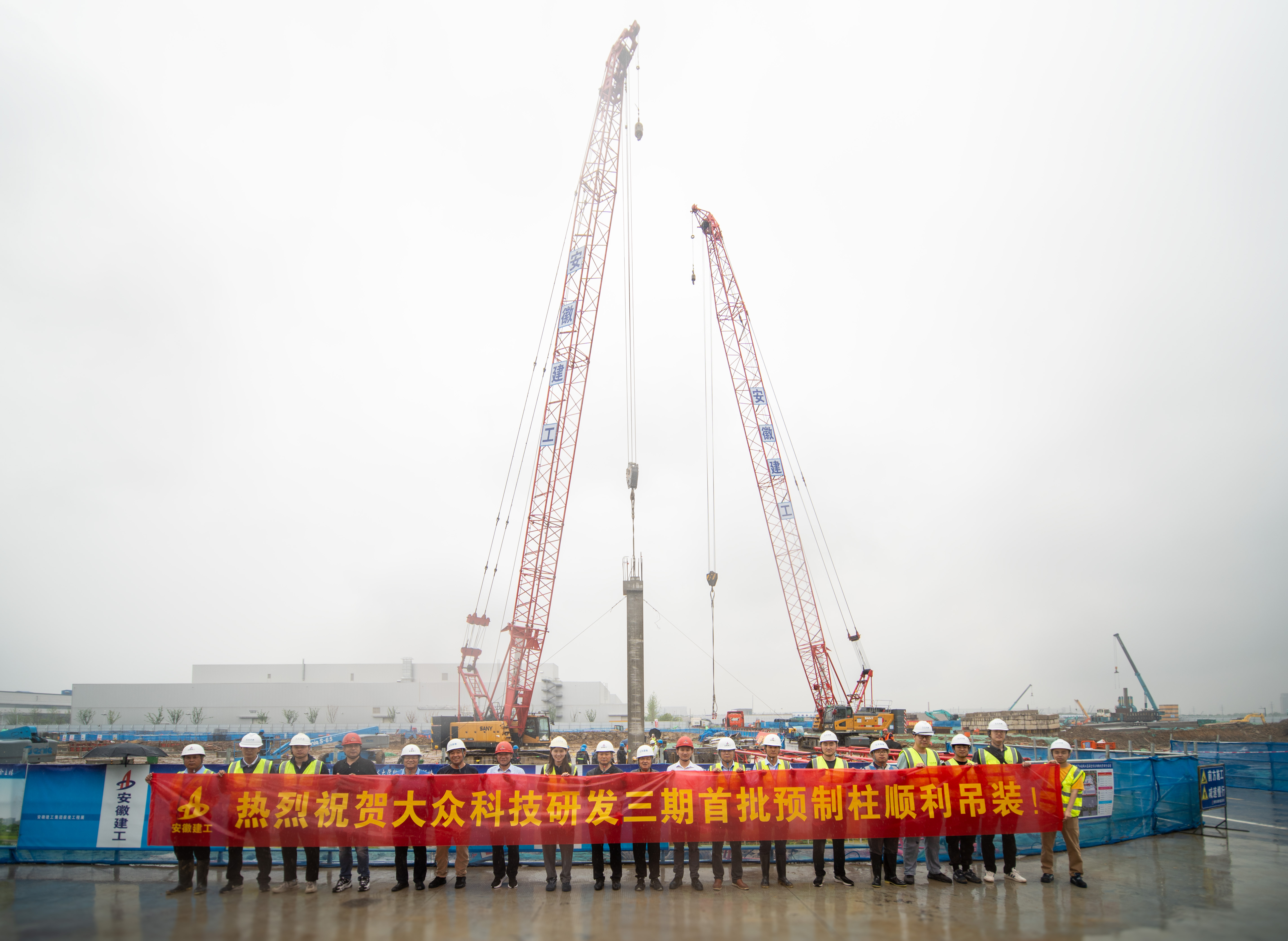 5月30日上午11时16分,安徽建工三建大众科技研发三期项目首批预制柱顺利吊装,标志着项目建设取得了阶段性成果,项目建设驶入“快车道”。