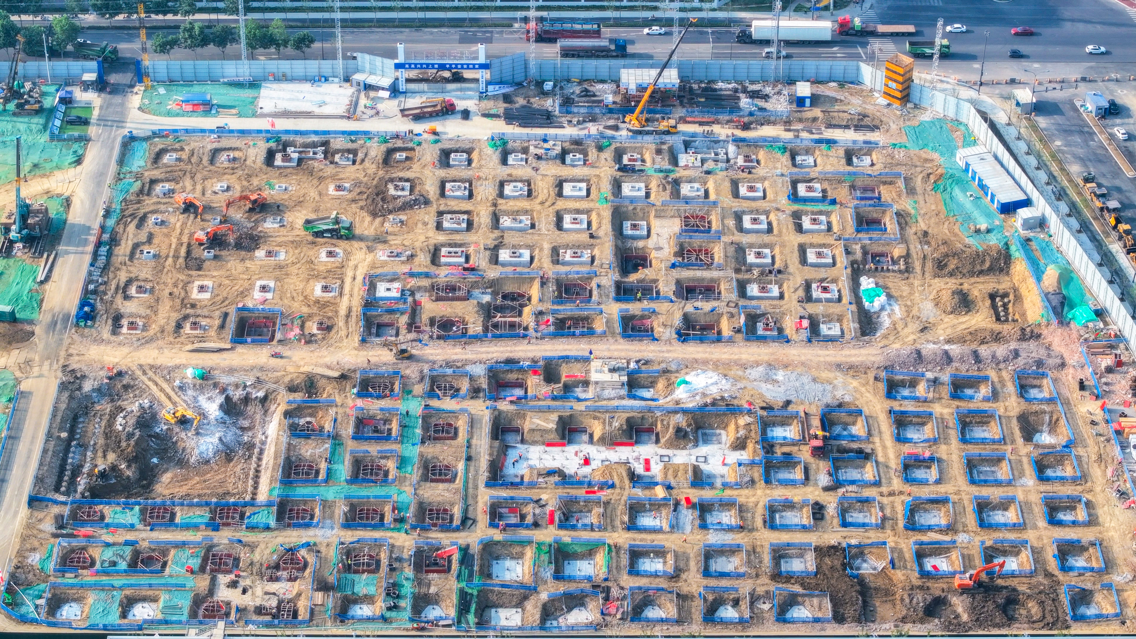3.停车楼和固废库桩基已全部完成,车间一、车间二基础承台浇筑已全部完成,车间三基础承台浇筑完成48.9%,其中车间一和车间二已超前完成计划。