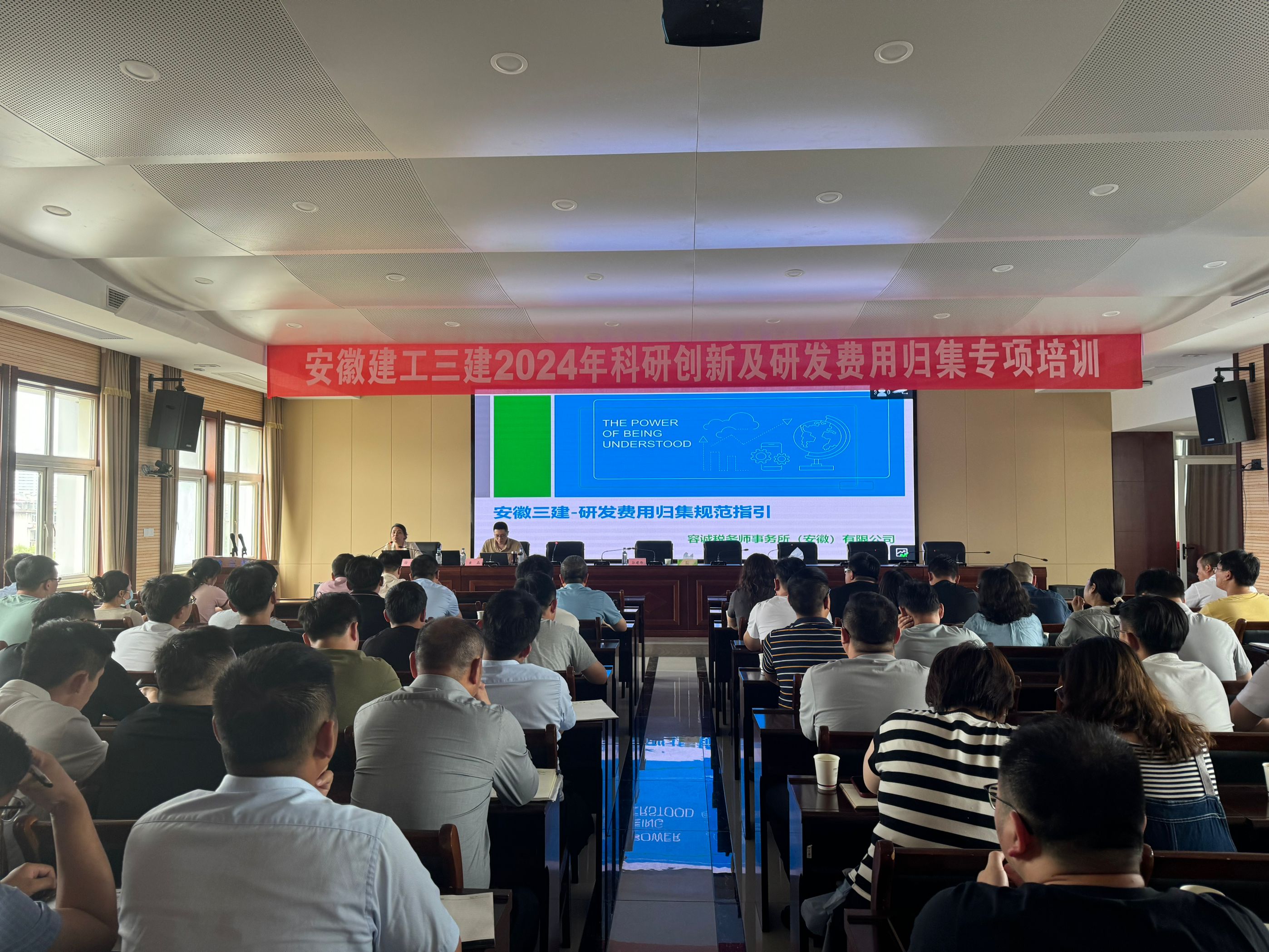 本次培训会议特邀安徽建工集团工程管理部副部长陶双龙、容诚税务师事务所徐慧、黄磊担任授课老师。培训内容涵盖了国家关于科技创新政策和要求、企业如何提供工程科技含量的主要方法和思路、研发费用加计扣除政策概述税务角度、研发活动界定及项目管理、企业研发费用归集范围及不同口径比较、企业研发费用加计扣除申报及后续管理等多个方面。培训内容丰富、安排紧凑、注重实效。