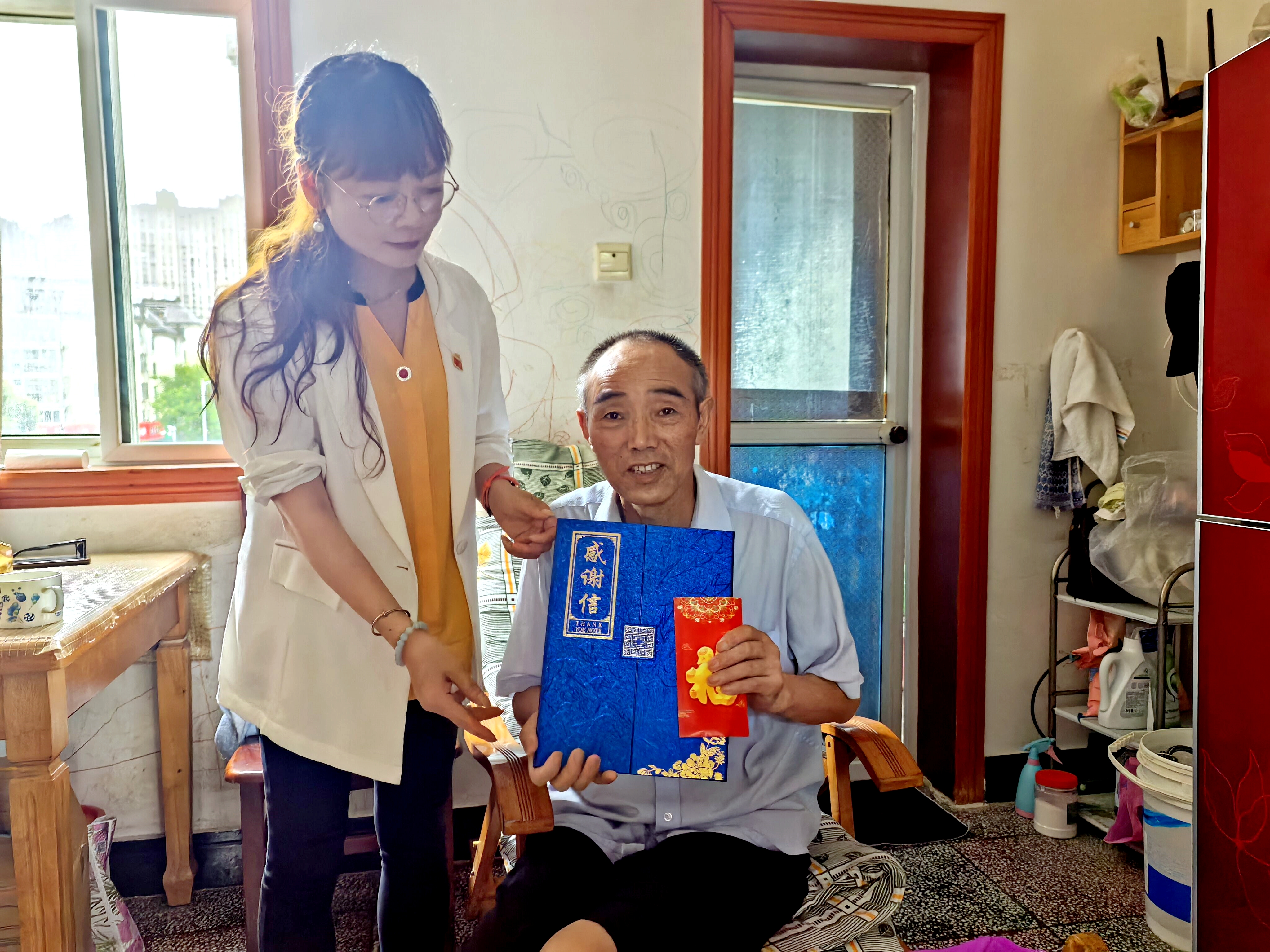 活动当天,工作人员来到员工家中,详细询问家属们的生活情况,对他们在员工背后的大力支持表示了高度赞扬,并向他们赠送了精心准备的感谢信和慰问金,传达公司对他们的关心与关怀。
