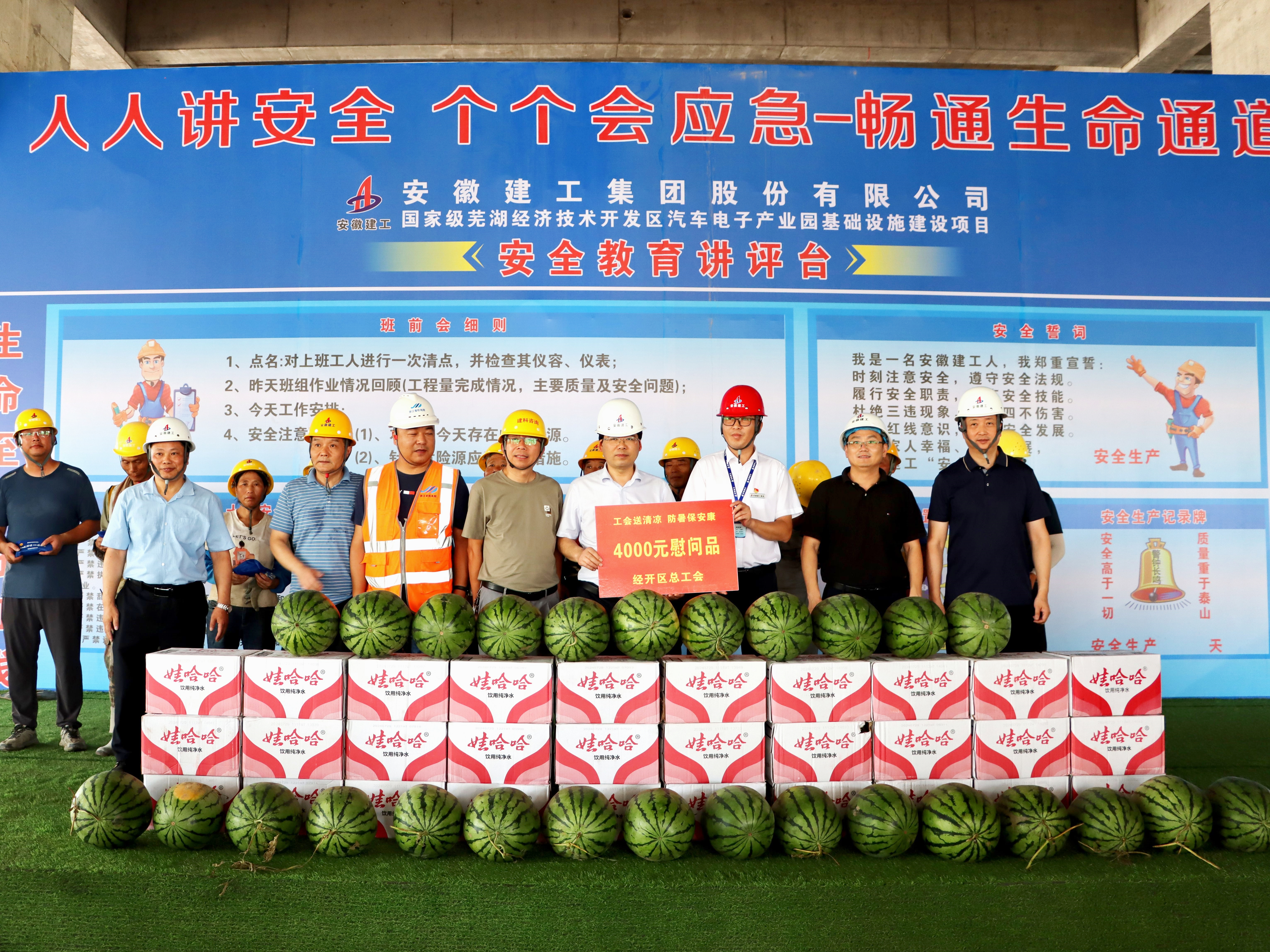 芜湖经开区党工委书记、管委会主任曹小明带队赴芜湖汽车电子产业园基础设施建设项目开展夏季“送清凉”慰问活动