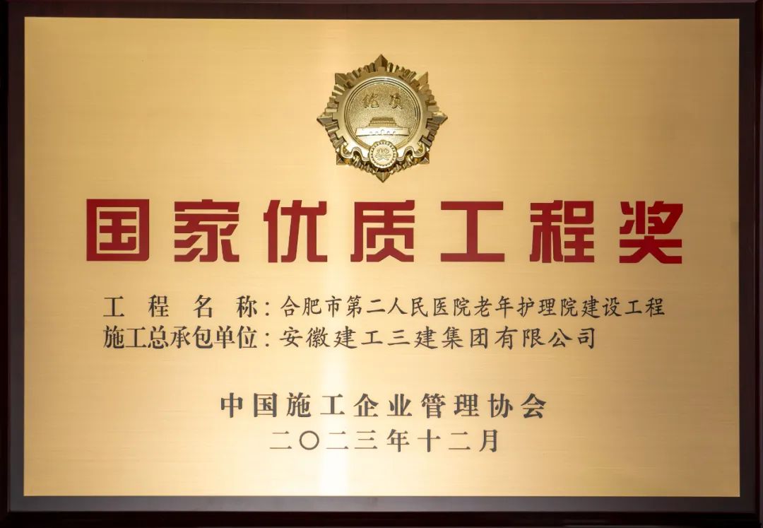 国家优质工程奖设立于1981年,是经国务院确认的我国工程建设领域设立最早、规格最高,跨行业、跨专业的国家级质量奖项,弘扬“追求卓越、铸就经典”的国优精神,主要表彰设计优、质量精、管理佳、效益好、技术先进、节能环保,且综合指标达到同时期国内领先水平的工程项目。值得一提的是,与该项目仅一墙之隔的合肥市第二人民医院新区二期内科病房大楼项目也于此前荣获2020-2021年度“国家优质工程奖”,充分展现了我司一流的建设水平和项目管理能力。