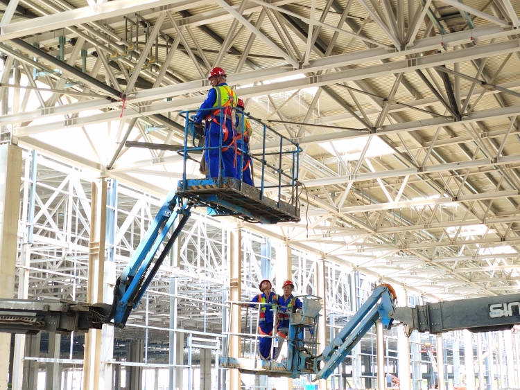 分公司、项目部经过周密规划与统筹安排,优化资源配置、集中优势兵力,攻坚重点任务。目前,现场已经投入了近500名精干安装施工作业人员和上百台工程机械,采取BIM规划排版、多工种协同交叉作业等多项手段,不等不靠、科学调度、主动作为,紧随土建地坪浇筑进度,同步、穿插推进各项施工任务。针对项目施工区域大、作业面广的特点,项目部充分“化整为零”,将庞大的施工园区划分成若干个小工区,实行认领负责,挂图作战、大干快上,确保项目如期完成、按时履约。同时,安装项目部勇于创新,充分利用实时视频会、现场碰头会等高效沟通手段,及时协调解决施工中的难题、分享宝贵经验,高标准高质量高效率推动项目建设。