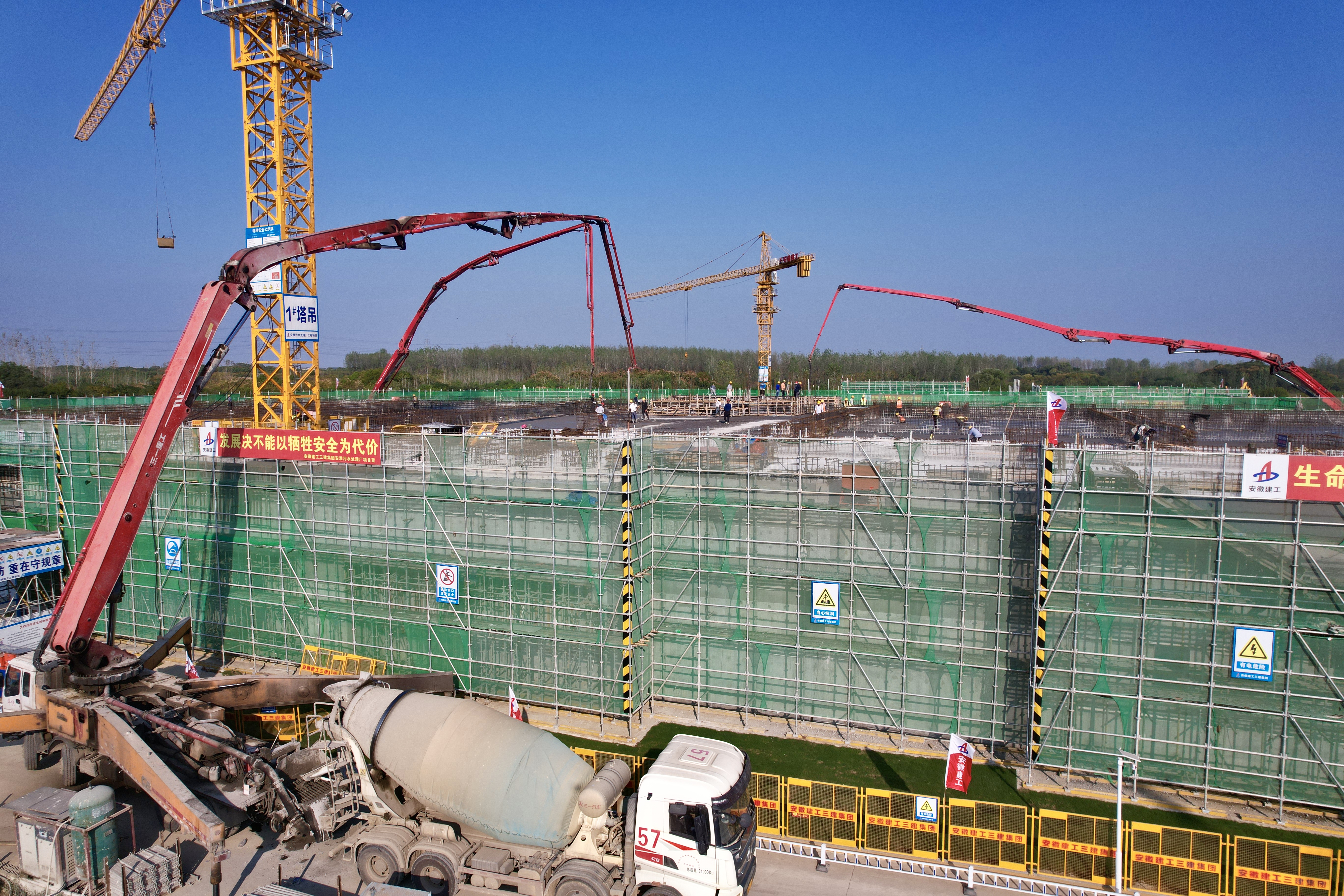 高质量项目进行时丨安淮污水处理厂项目最大单体结构全面封顶