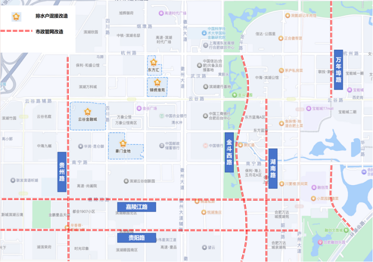 两项目主要内容为东方汇、锦绣淮苑等10个排水户雨污分流改造工程,贵州路、包河大道、庐州大道等12条主要道路的排水管网建设,全流域雨污水排水管网排查复查检测。目前,项目管理人员正在进行前期相关手续报建等准备工作。