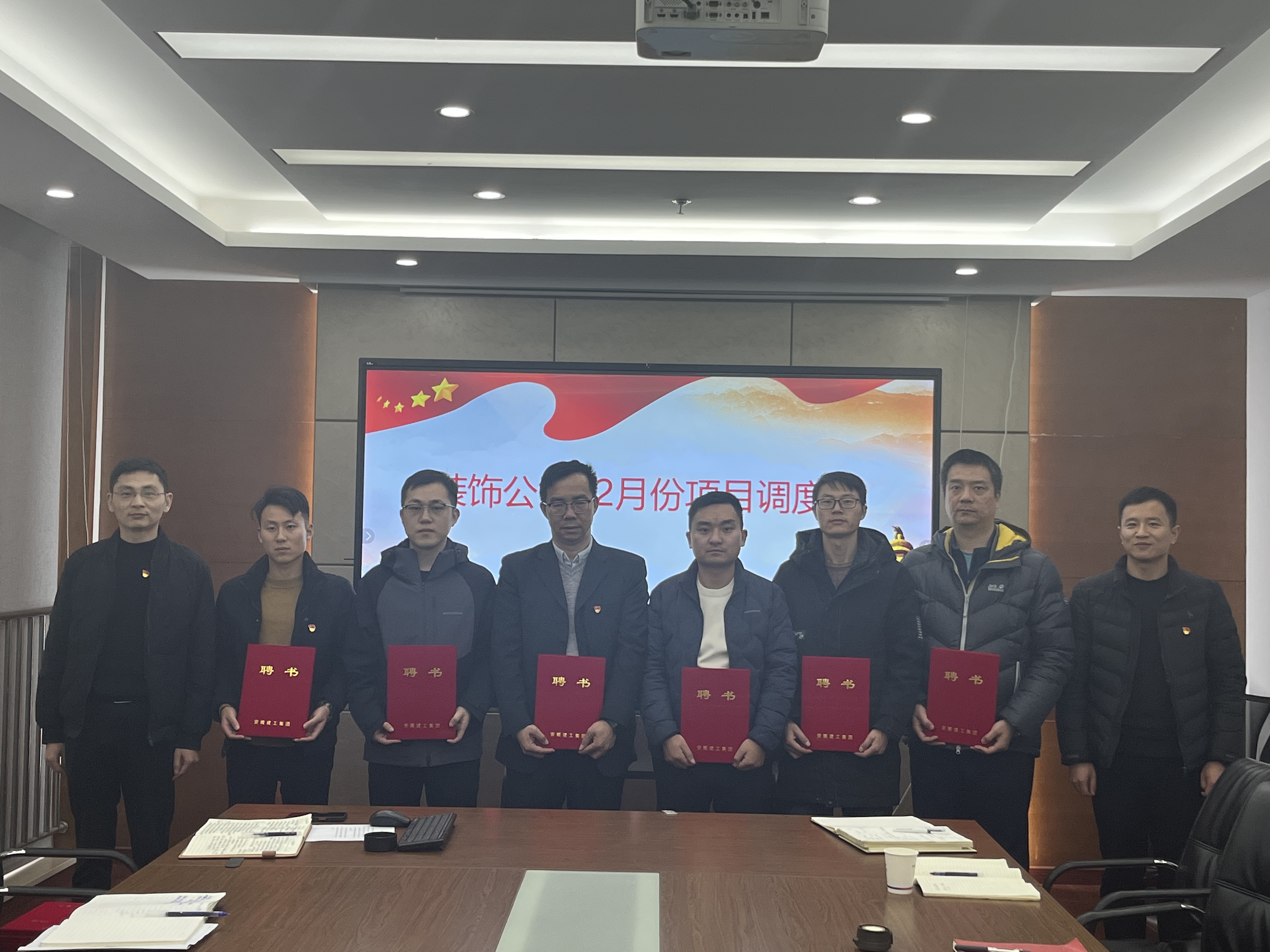 12月23日下午,装饰公司举办项目经理聘书颁发及项目经理宣誓活动。装饰公司班子成员、相关科室负责人、项目经理近20人参加。