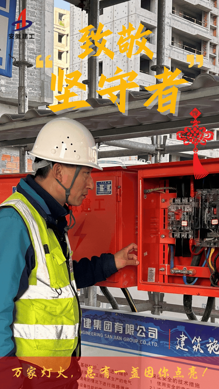 紫桐苑安置点项目位于合肥市长丰县双墩镇凤麟路与濛河路交叉口,于2023年10月10日正式开工,计划工期680天,A区总建筑面积约11万平方米,C区总建筑面积约9.7万平方米。目前,项目主体结构全部封顶,正在进行八层以上二次结构墙体砌筑施工。图为项目安装管理人员李虎正在进行日常安全用电检查。