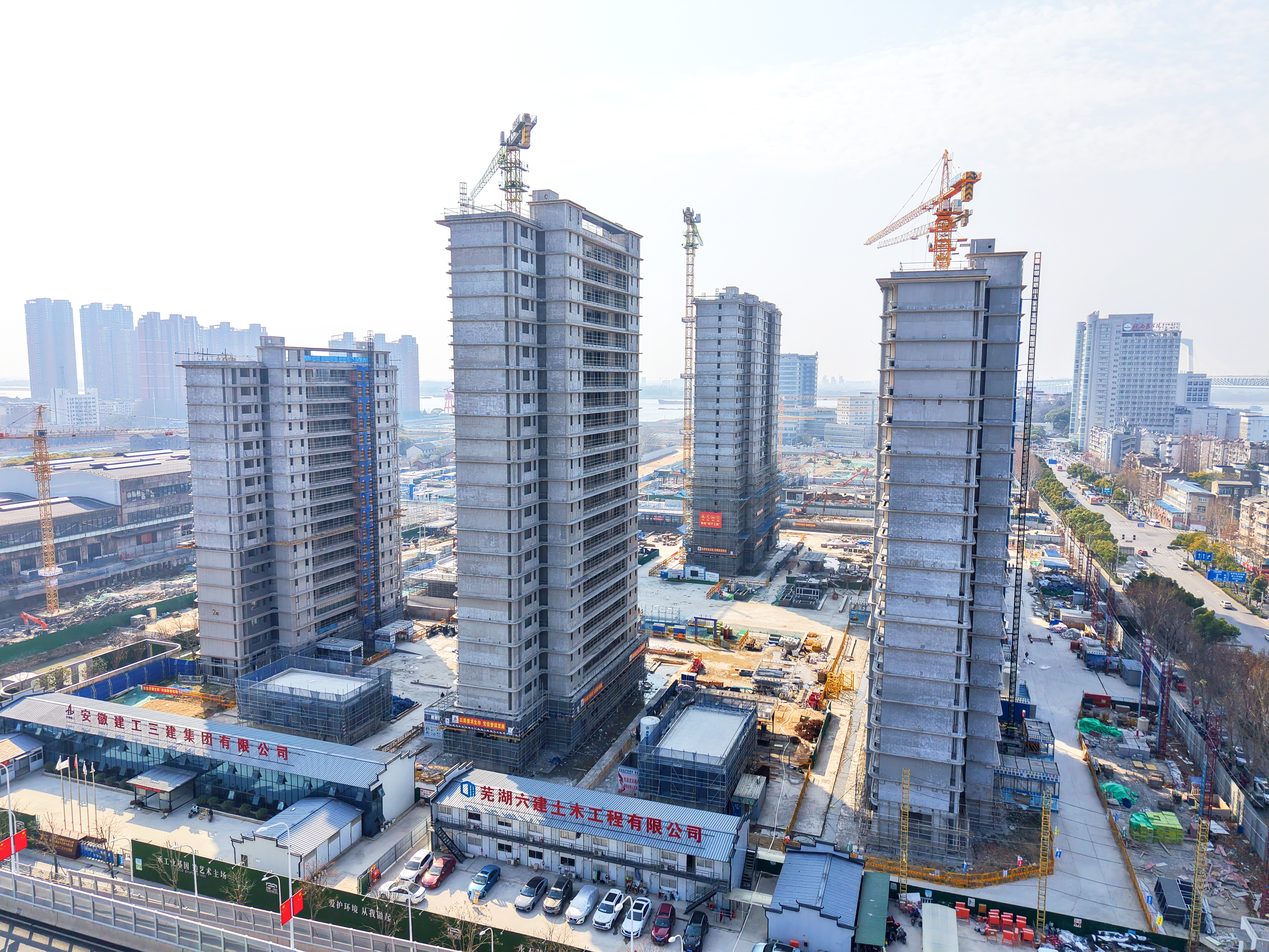 造船厂2号地块施工总承包项目位于芜湖市镜湖区长江中路与赭山西路交叉口西南角,总建筑面积约9.4万平方米。