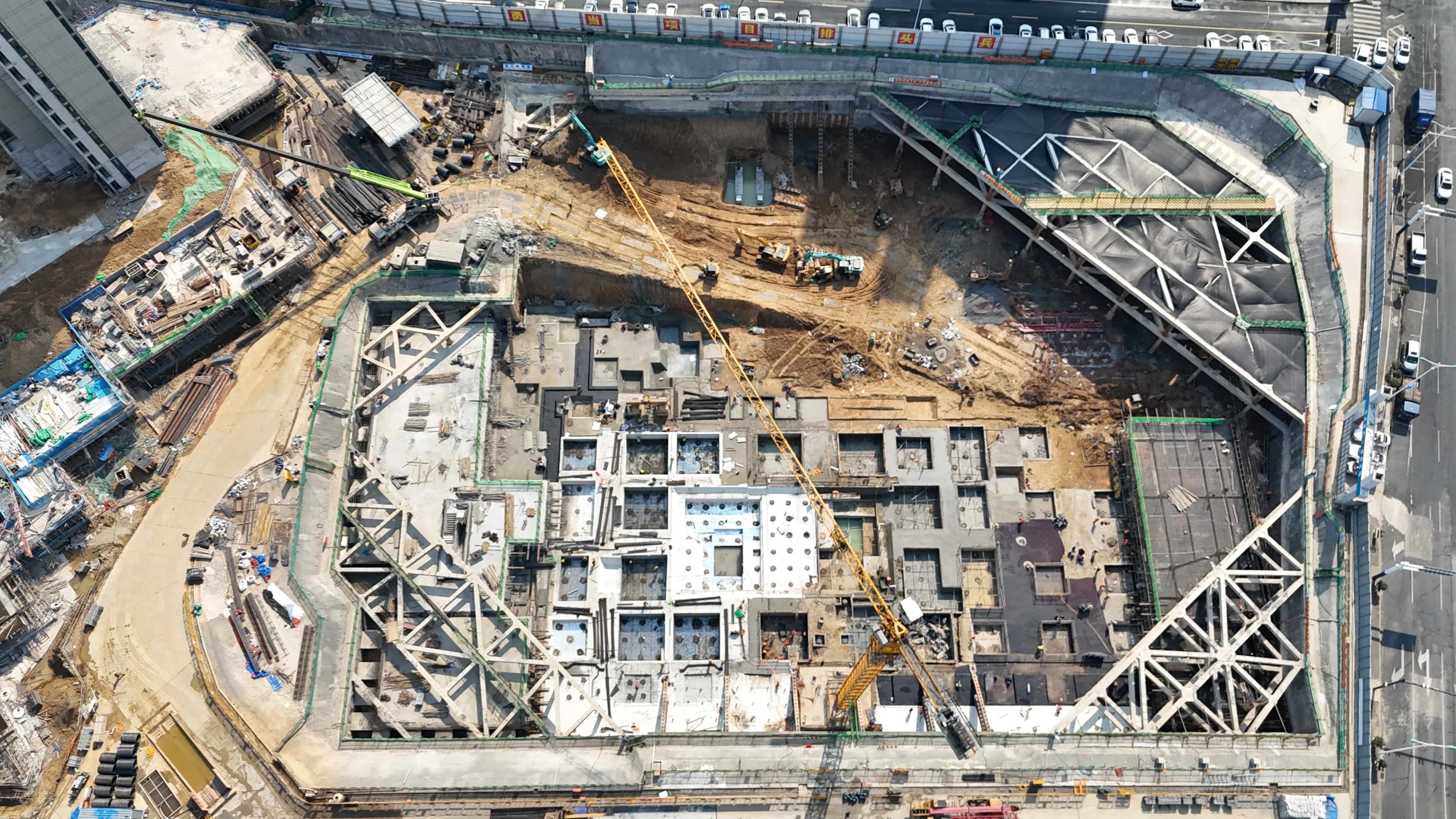 目前,项目正抢抓施工黄金期,组织各分包单位,两班作业,管理人员全程跟班,共同加紧基础及地下室结构施工,占地1万平方米的基础已完成近80%,负三层地下室已完成近40%,与住宅交界处地库已完成近70%。