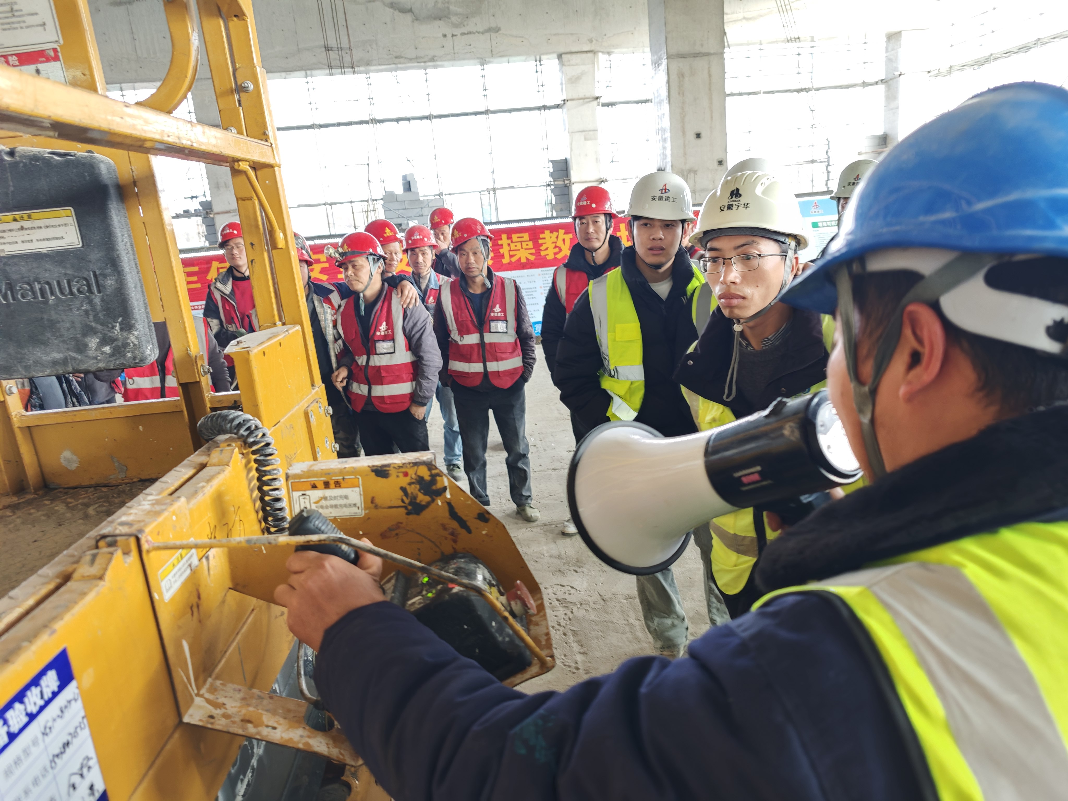 分公司党支部充分发挥“把方向、管大局、保落实”作用,以“党员技术攻坚小组”为载体,精准对接项目安全需求。通过党支部协调资源,特别邀请弋江区新型产业园项目剪叉式高空作业车供货单位技术负责人开展“党建+技术”双师教学。参训人员围绕设备结构装置、操作流程等核心要素展开深度学习,重点突出“党员安全责任区”设备监管要求,将“持证上岗、规范操作”的刚性规定转化为党员带头践行的行动准则。现场设立党员安全示范操作台,通过“党员带群众”“师带徒”的红色传承模式,确保技术规范入脑入心。
