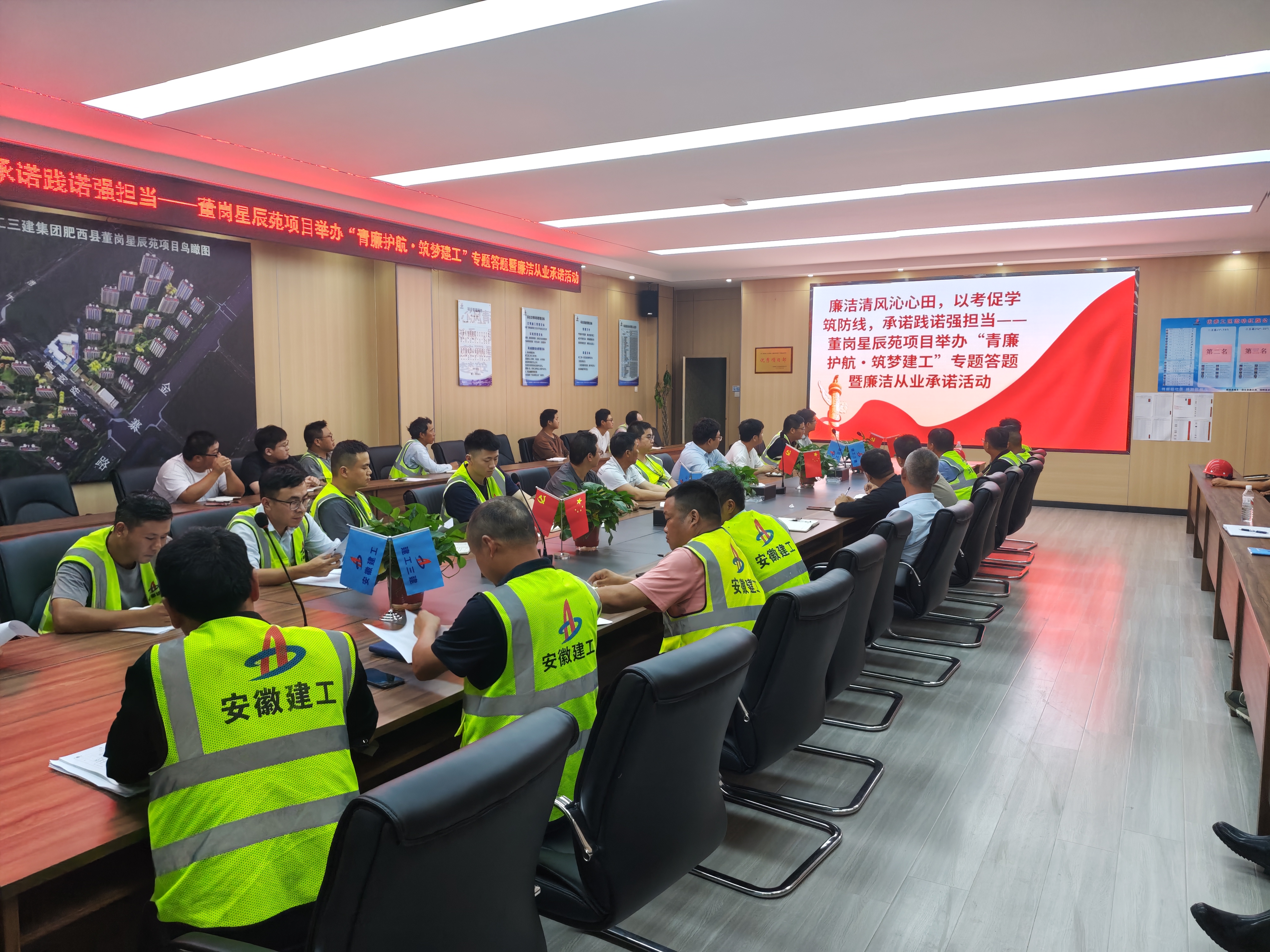 6月20日下午,董岗星辰苑项目部举办 “青廉护航・筑梦建工” 专题答题暨廉洁从业承诺活动,创新运用“以考促学、以学促廉”模式,推动项目团队廉洁意识入脑入心、见行见效。