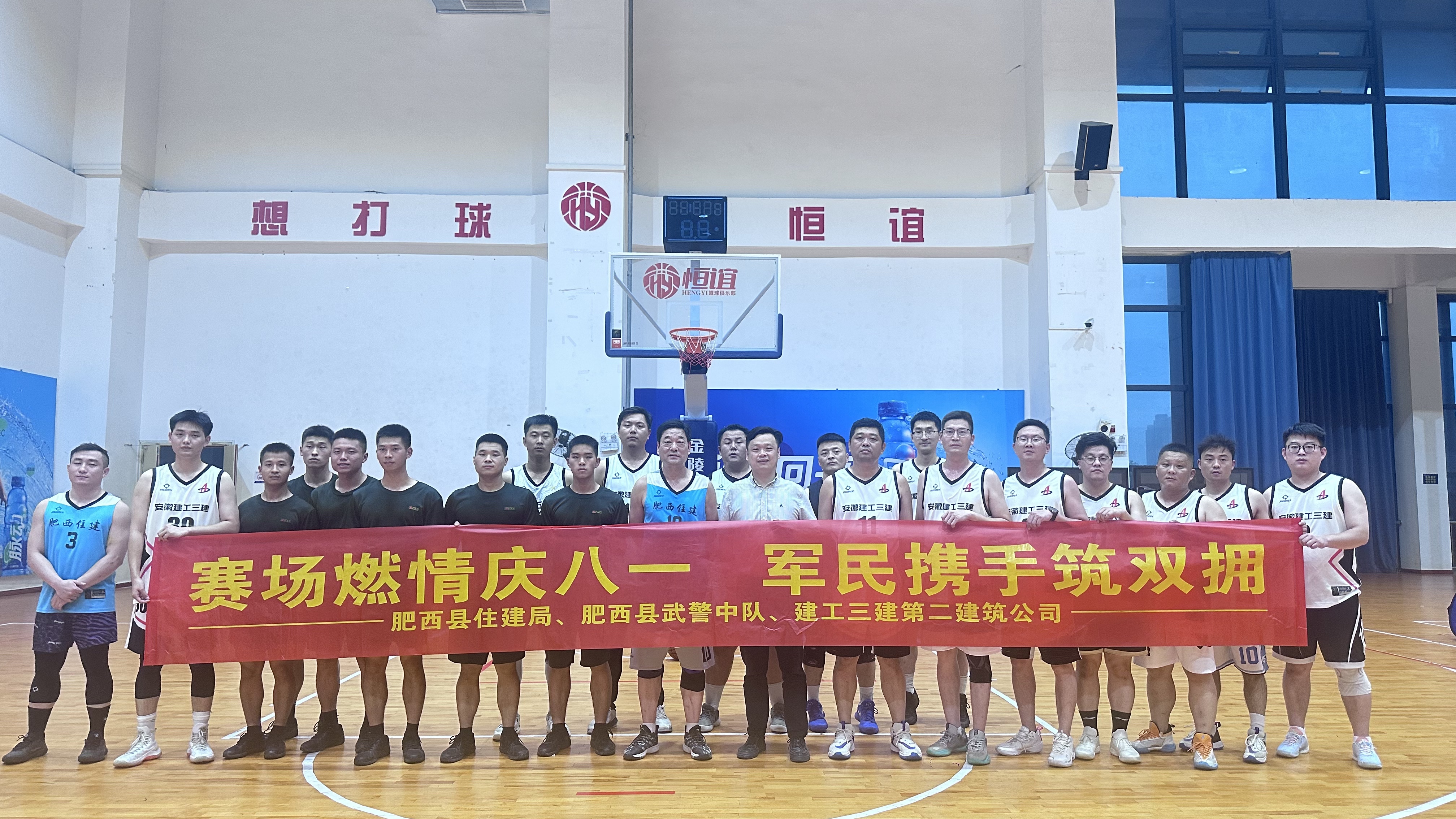 第二建筑公司联合肥西县住建局、肥西县武警中队,共同举办“赛场燃情庆‘八一’、军民携手筑双拥”主题篮球友谊赛。