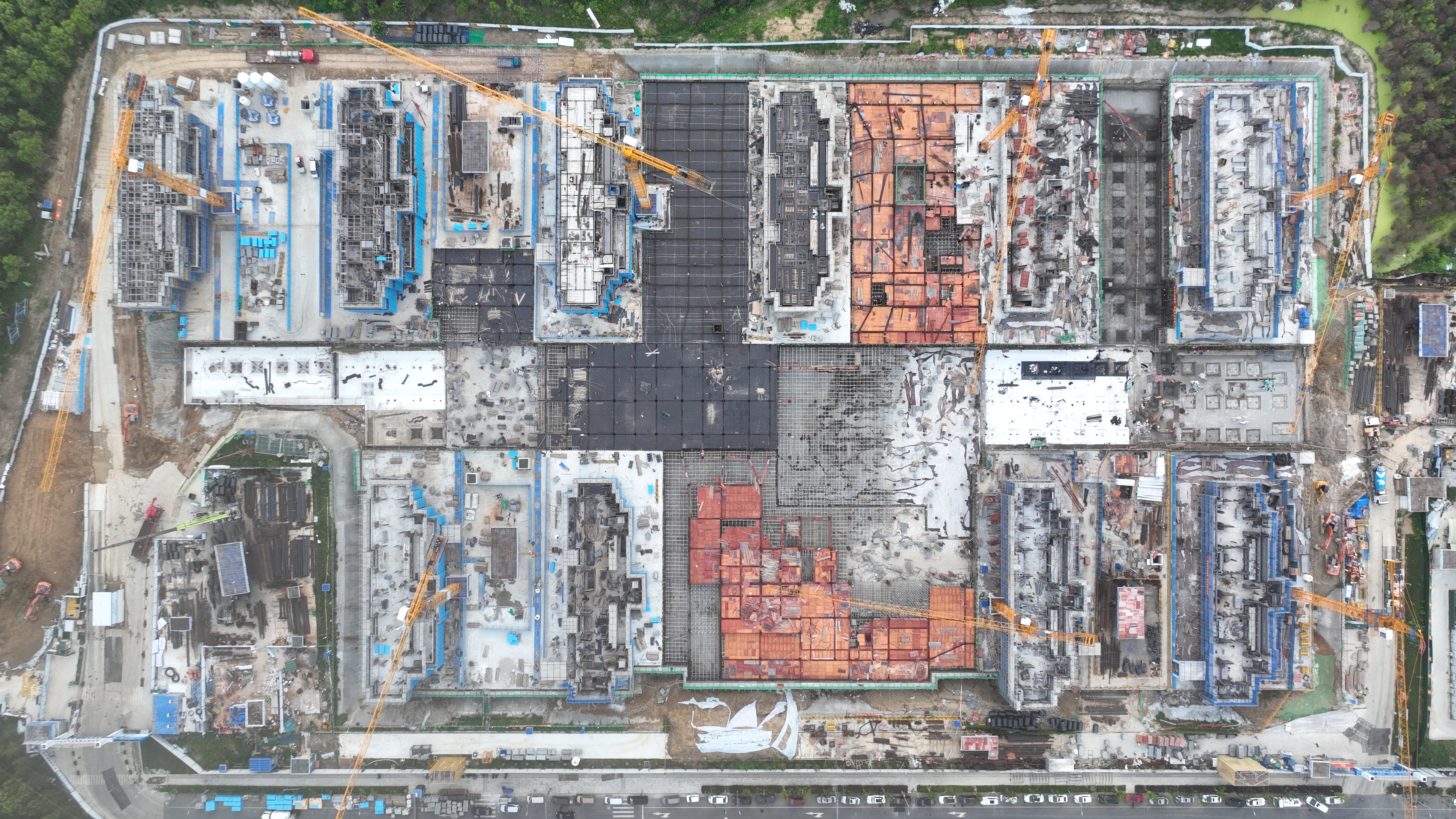 地库桩基、塔吊基础、塔吊安装、土方外运、桩基检测、地下室垫层均已完成;地下室筏板结构完成93.1%,地下室顶板结构完成70.4%,为后续主体施工奠定坚实基础。