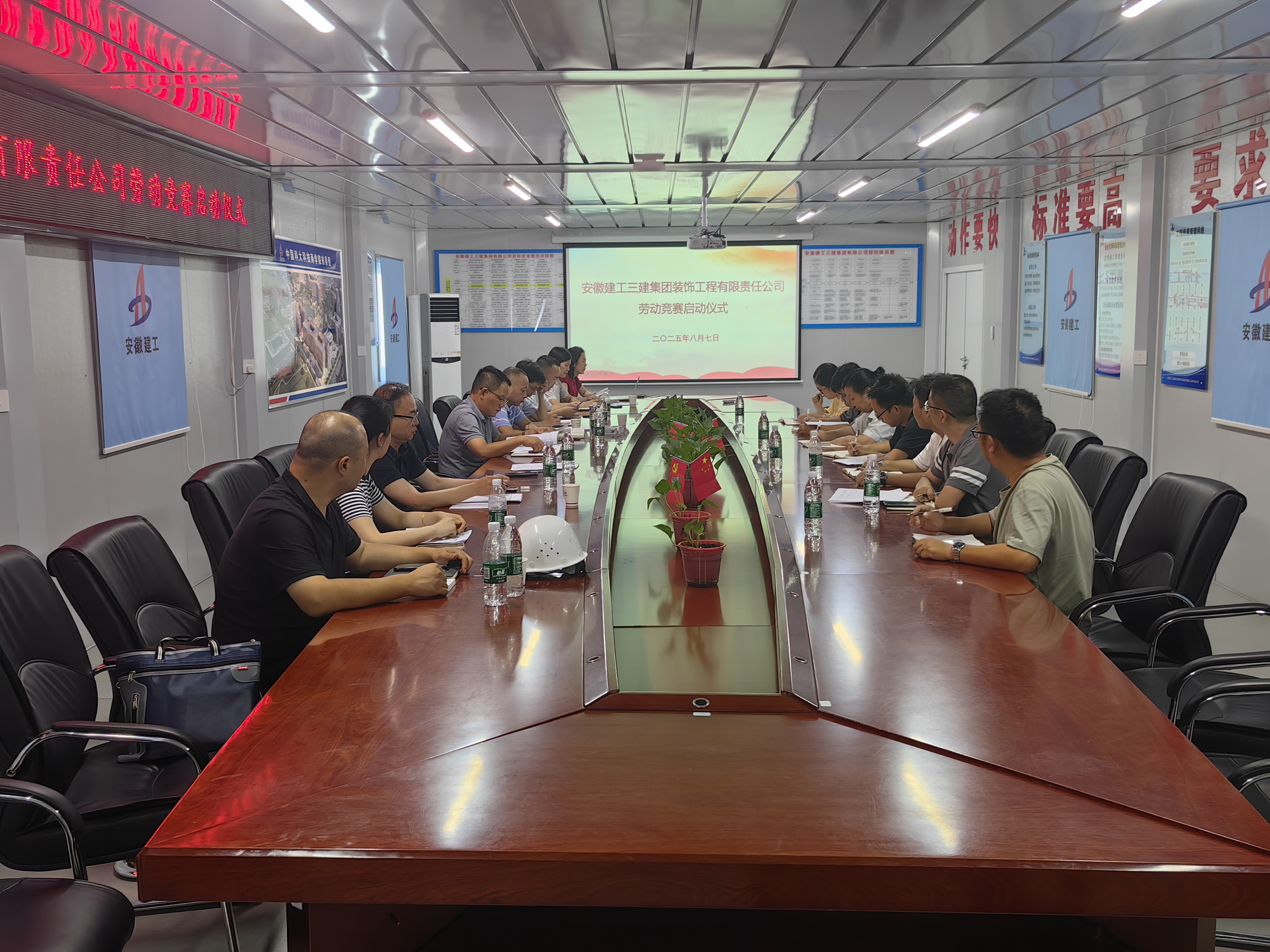 近日,装饰公司在中国科大科技商学院项目开展2025年度“当好主人翁,建功大发展”劳动竞赛启动仪式暨动员会,全面部署竞赛任务,号召全体员工以“比学赶帮超”的奋进姿态全面冲刺年度各项目标。