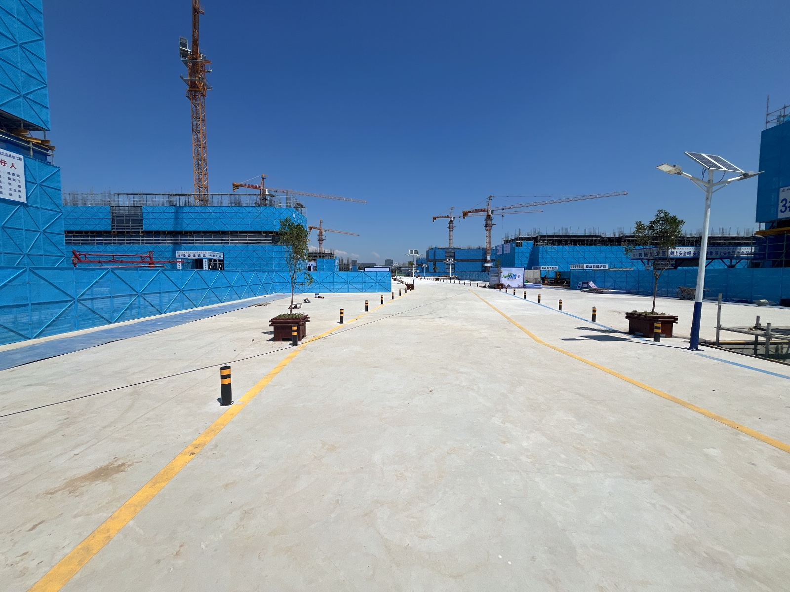 3.装配式基础完成:地下室部分已完成封顶,现场塔吊已配备到位,现场环路浇筑完成,装配式堆场设置完成,为后续叠合板、楼梯等装配式构件吊装奠定基础。