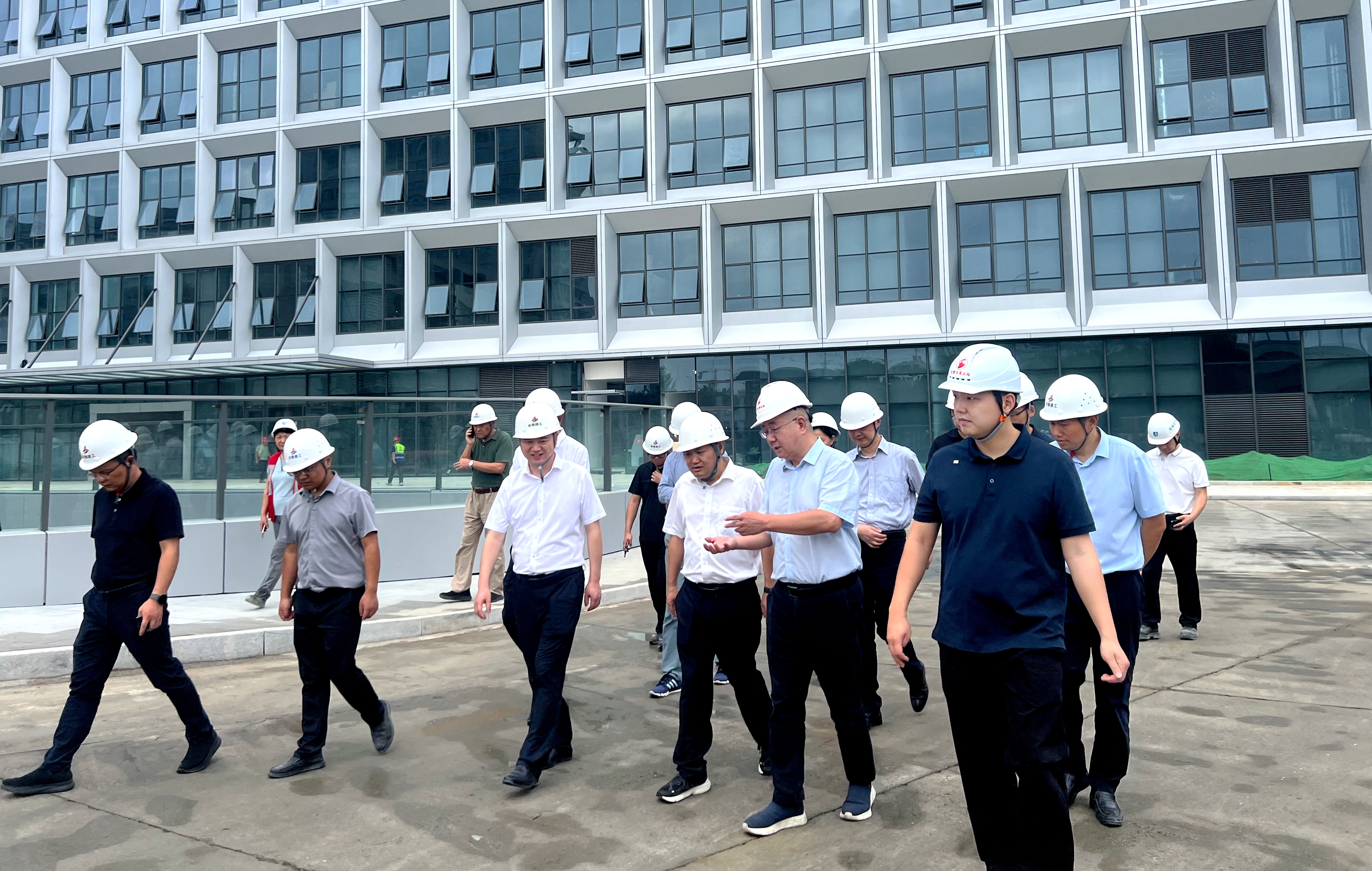 在了解项目整体建设情况时,吴爱国对项目团队主动攻坚克难、积极应用智能建造等新工艺新技术,致力于打造精品工程的做法给予充分肯定,并对项目装饰呈现效果给予高度评价。针对项目创新采用的“排、挡、防结合的卫生间防水做法”,他特别予以赞赏,强调在项目后续收尾阶段,要科学优化施工组织方案,合理统筹工期安排,充分发挥省属企业优势,确保优质、高效完成项目建设任务,为地方医疗卫生事业发展贡献力量。