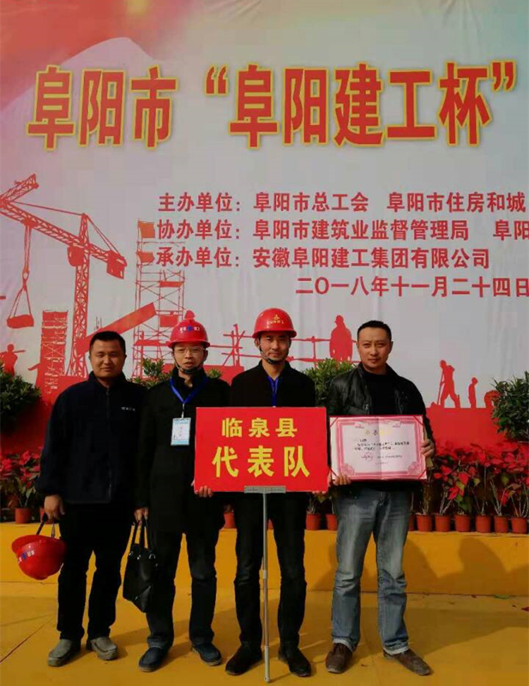 2018年11月24日,阜阳市“阜阳建工杯”职业技能竞赛在资福寺安置区工程项目举行。安徽三建八公司银杏苑安置区项目受邀代表临泉县参加比赛,并夺得大赛一等奖。