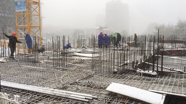 2018年已入年尾,12月8日开始,芜湖地区出现连续降雨雪天气,但这没有阻挡住明发春谷熙岸住宅小区项目部施工前进的脚步,现场施工人员卯足干劲,挑灯夜战,施工机械加足马力冒雪施工,全力以赴抢进度、赶工期。