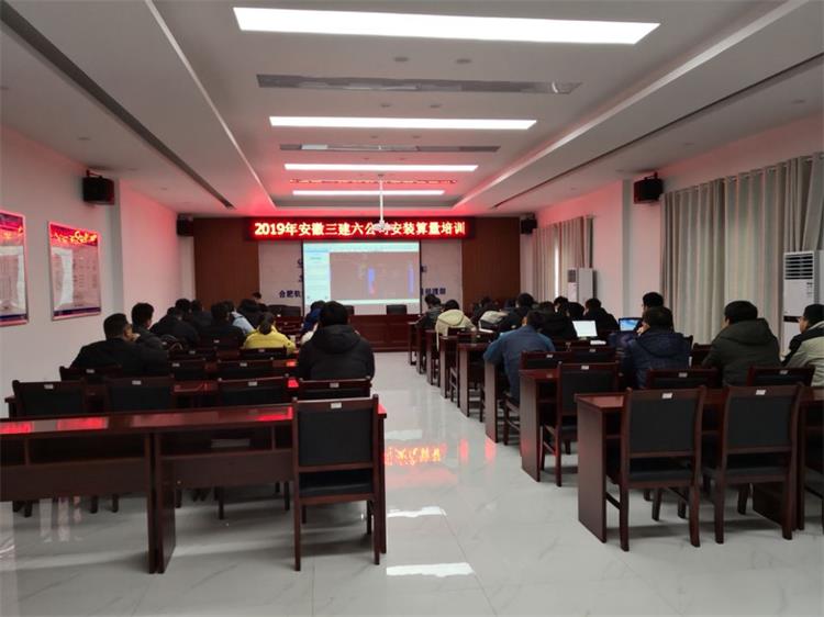 2019年1月5日星期六上午,六公司在公司合肥轨道交通4号线4标项目会议室举办了2019年的第一场内部培训,也是安装算量培训,分公司领导班子、项目经理、核算员、技术负责等40人参加了培训。