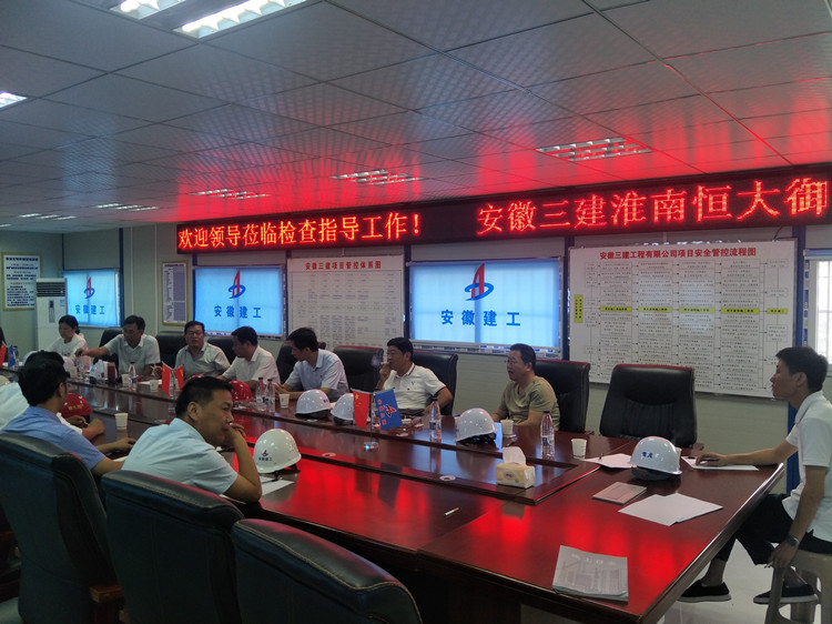 7月14日上午,淮南市城建局党组书记、局长熊寿宏带领市建管处及省安全生产专家到三公司淮南恒大御府项目进行安全生产及扬尘防治工作专项检查,对项目安全体验区、现场喷淋系统、外架搭设、建筑起重机械管理等创新做法给予了高度赞扬。