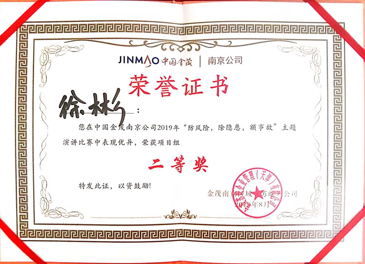 为了深入开展安全宣传和教育活动,中国知名房产公司中国金茂南京公司近日举办了2019年度“防风险、除隐患、遏事故”主题演讲比赛,和玥公馆项目安全总监徐彬代表项目在本次主题演讲比赛,并在比赛中获得项目组二等奖的好成绩。