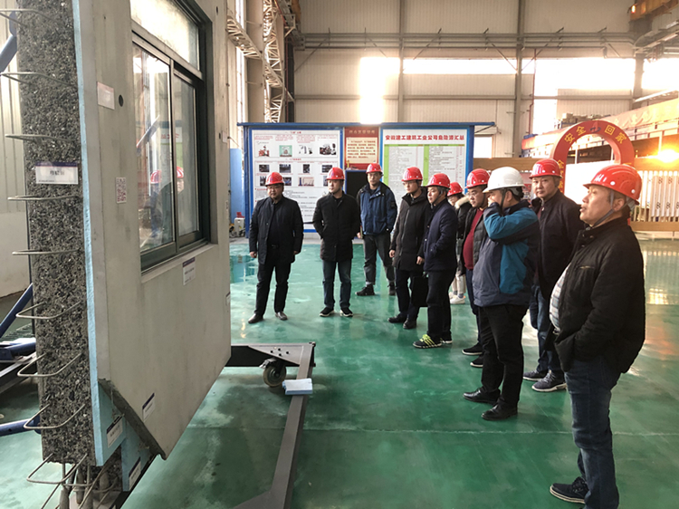 随后,孙俊中一行来到安徽建工建筑工业有限公司,参观了产业化构件生产线,详细了解了建筑产业化PC构件的生产工艺流程以及一体化施工的有关环节。孙俊中一行人还在工业公司会议室和有关人员开展了座谈交流,王兴明介绍了建筑产业化施工过程中的有关措施及管理,并详细讲解了安徽三建装配式建筑生产施工情况。