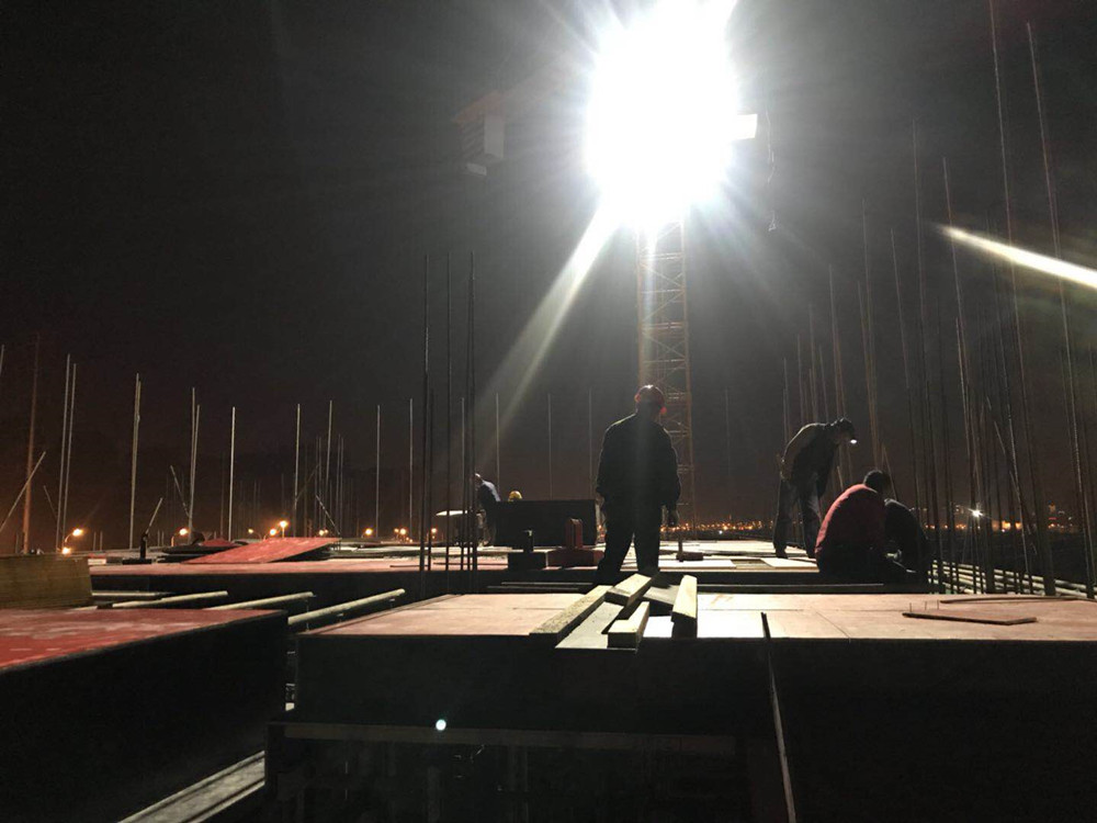 联东U谷项目:又是一个不眠之夜!项目现场灯火通明,一边是挖掘机轰鸣声震耳欲聋,一边是混凝土泵车在一路欢奔。项目楼层不高,但楼栋多达21栋,几乎每天都在开辟新的作业面。虽然项目在合肥,但首次担任项目经理的王浩毅然带着铺盖卷,24小时吃住在施工现场,他说:“前期国家防控疫情我做不了多大贡献,现在抢工期就是我大展身手的时候了!”