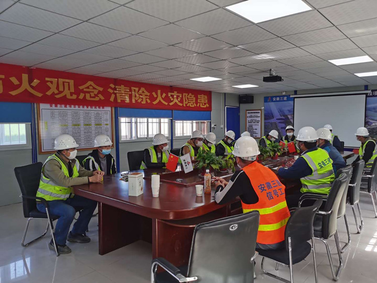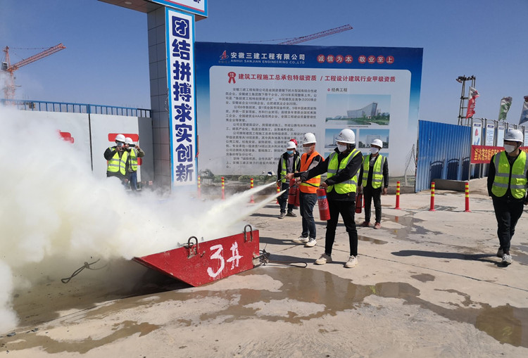 2020年3月19日上午,安徽三建六公司圣桦锦江天玺A标段项目部组织20余人开展春节消防演练。项目部还邀请了业主、监理方参与演练。