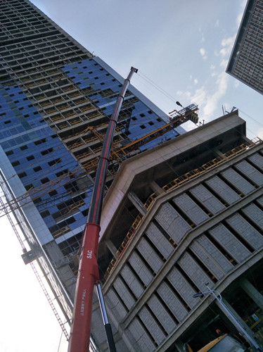 150吨巨塔平稳着陆 超高层项目建设再上新台阶