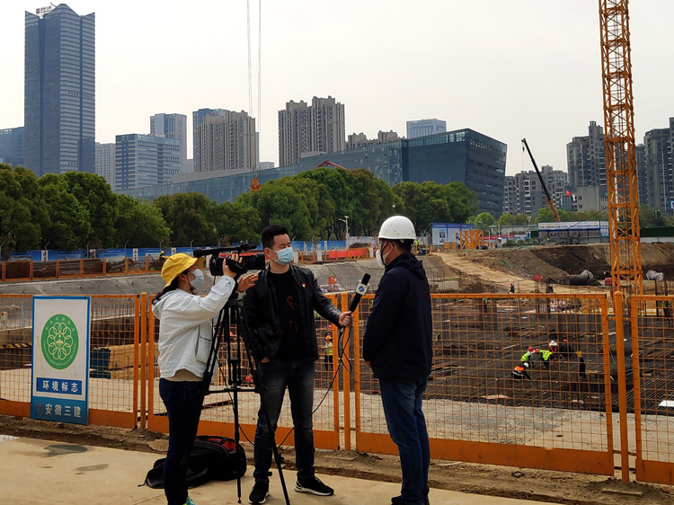现场如火如荼的基础阶段施工氛围,感染了前来采访的记者,纷纷在施工大干现场进行采访取景。项目负责人谢克宝表示项目现阶段的各项工作正按既定目标稳步有序向前推进。作为省内建筑龙头企业,安徽三建将坚持工匠精神为广大市民建设一座精品大书房,让书香为天鹅湖增色添彩。在提及施工是否受疫情及相关因素影响时,谢克宝说,在建设单位市文旅局、重点局及总公司的大力支持下,项目采取了多项措施,在保障防疫安全、施工安全、质量可靠的同时抢抓施工进度,计划于本年度项目可以完成主体结构施工部分。