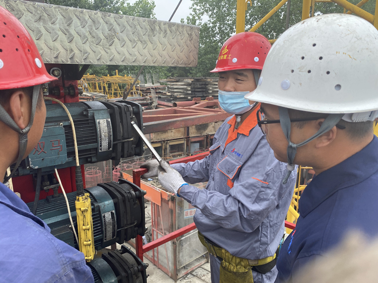 本次培训主要讲解塔吊液压推杆制动器和施工升降机电磁制动器的工作原理及实际调节。培训中,维保班班长刘磊在现场结合实际发生故障案例详细剖析了施工升降机电磁制动器原理及调节的方法;机修班质量员袁坤逐个指导培训员工进行塔吊液压推杆制动器的调整。