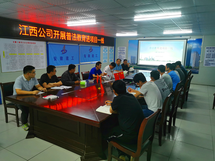 为进一步提高全体职工的法律意识和疫情防控意识,为分公司做好疫情防控常态化工作和生产经营工作提供强有力的法律保障,6月19日下午,江西公司党支部书记龚英全利用阴雨天,在凤凰新天二期项目部会议室为项目近20名职工讲授一堂普法教育课。