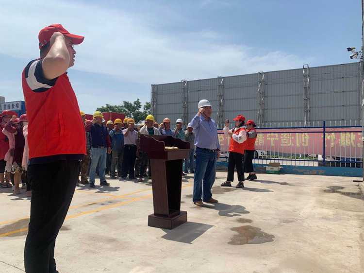 风华社区党委书记王坤与项目经理李先华带领全体人员宣誓