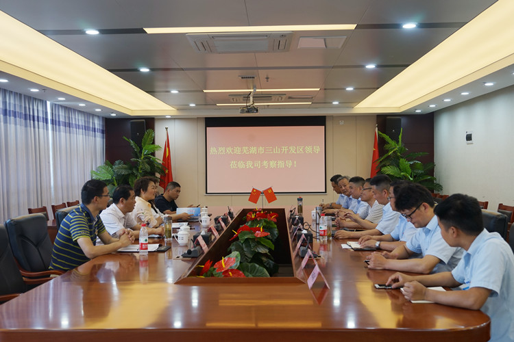 考察团一行与基地相关负责人进行了座谈交流,听取了安徽建工集团装配式构建生产基地产业布局及发展现状,询问了解基地辐射半径与业务合作模式,并详细介绍了三山经开区目前的政策优势。