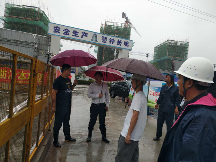 7月19日上午,金寨县城上空乌云密布,大雨磅礴,金寨等地区打破了全年日降水记录,县纪委常委,县监察局局长张英洲第一时间冒雨深入十一公司金寨明发超高层项目调研查看汛情和指导项目防汛布置工作。