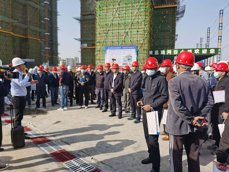 2020年10月23日上午,淮南市建管处组织淮南市建设、监理、施工单位约180余人观摩九公司网云小镇二期一标段项目建设。