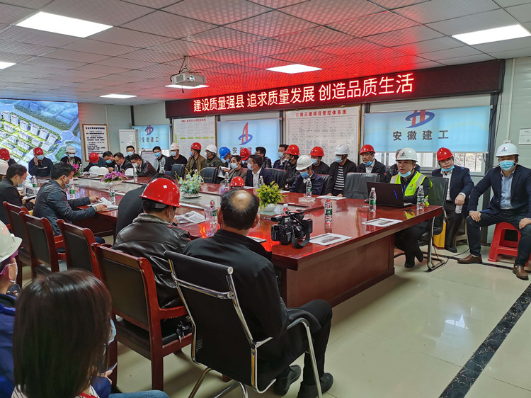 在项目会议室,项目负责人高剑介绍了项目工程概况,重点介绍了项目在质量、安全等方面管理措施以及施工亮点等。随后,全体观摩人员深入项目施工现场,观摩了项目现场工程质量及安全文明相关措施,相关领导对项目现场的各项管控措施及取得的成绩给予了高度的评价,并充分肯定了安徽三建作为国有企业的责任意识和担当精神。