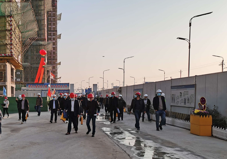 2020年11月11日,安徽三建临泉金科城项目迎来临泉县大规模观摩活动。观摩活动由临泉县技术监督局主办,县住建局、创建办联合组织。观摩团由县质监站站长张清超、安监局副局长范向阳领队、创建办质信股等相关负责人及临泉县在建项目建设、监理、施工单位负责人70余人组成。临泉县电视台全程跟踪报道。本次观摩活动主旨是推广和总结“质量强县”活动中的提升质量的经验和好的做法。 金科城项目以优质高效的项目建设成果被选为观摩对象。