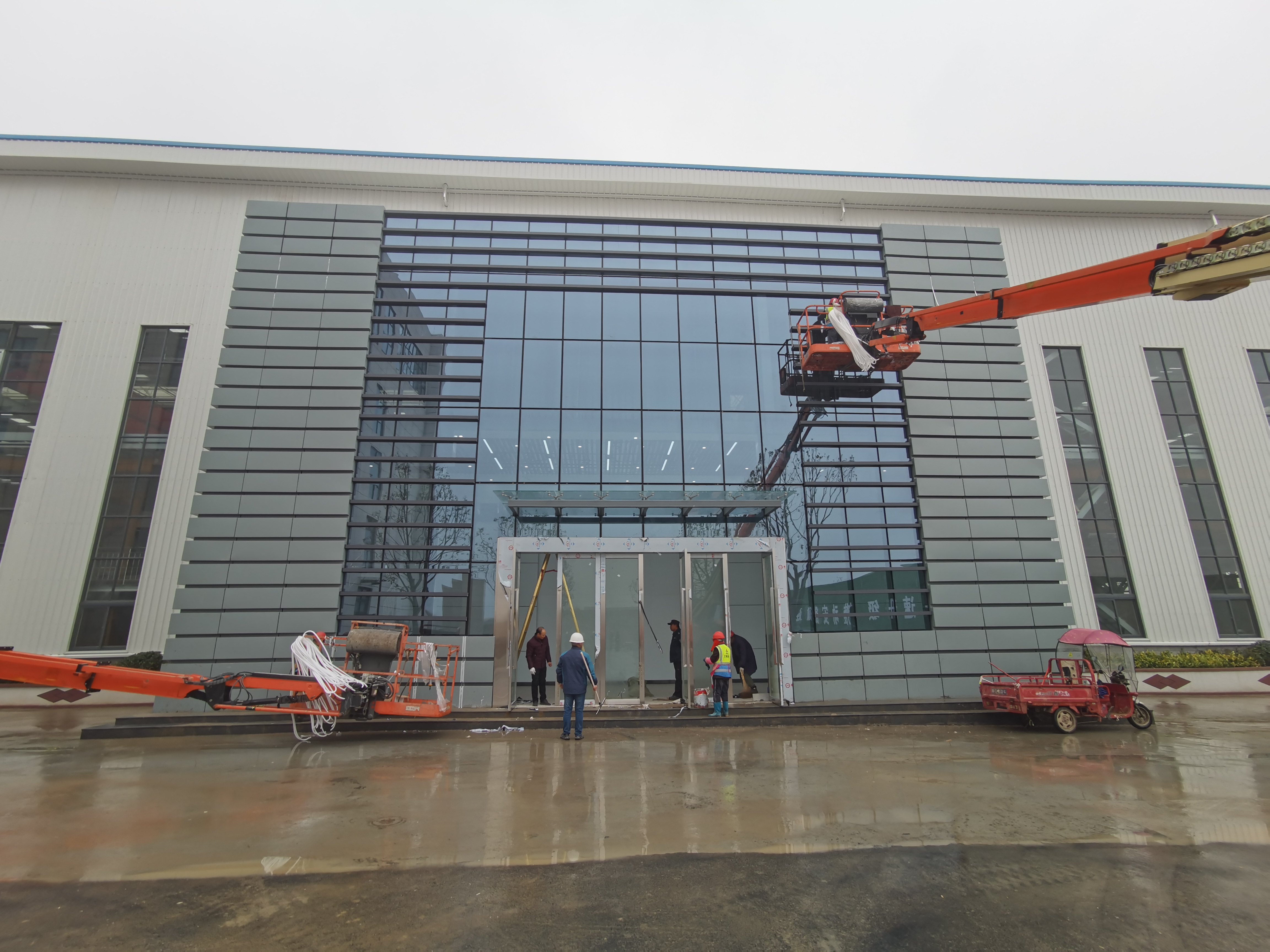 面对时间紧任务重,定制的铝型材、玻璃、铝板等材料加工周期长等困难,装饰项目经理李斌带领项目团队坚定目标,仔细研究施工方案、合理安排工序、精心施工。自进场,项目部积极和厂家沟通协调,24小时不停歇连续加工,为顺利完成新增门厅及二层实验室提供了有力保障。施工期间正逢连阴雨天气,总用时13天,期间连续阴雨7天,给项目增加了高空作业难度及风险系数,项目部实时关注天气情况,合理安排钢结构、内装饰、外幕墙穿插并行施工,抓住雨停间隙,大雨小干、小雨大干、雨停加油干。